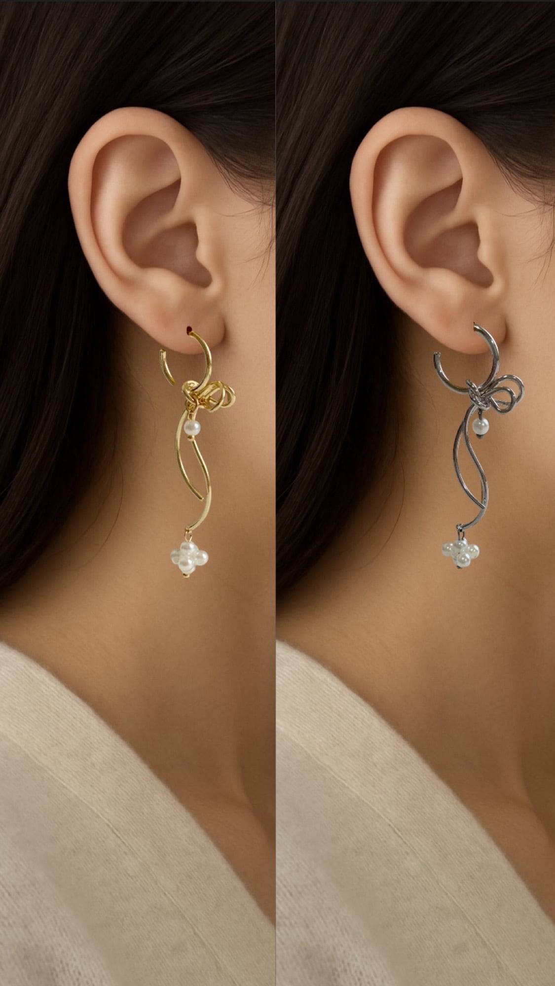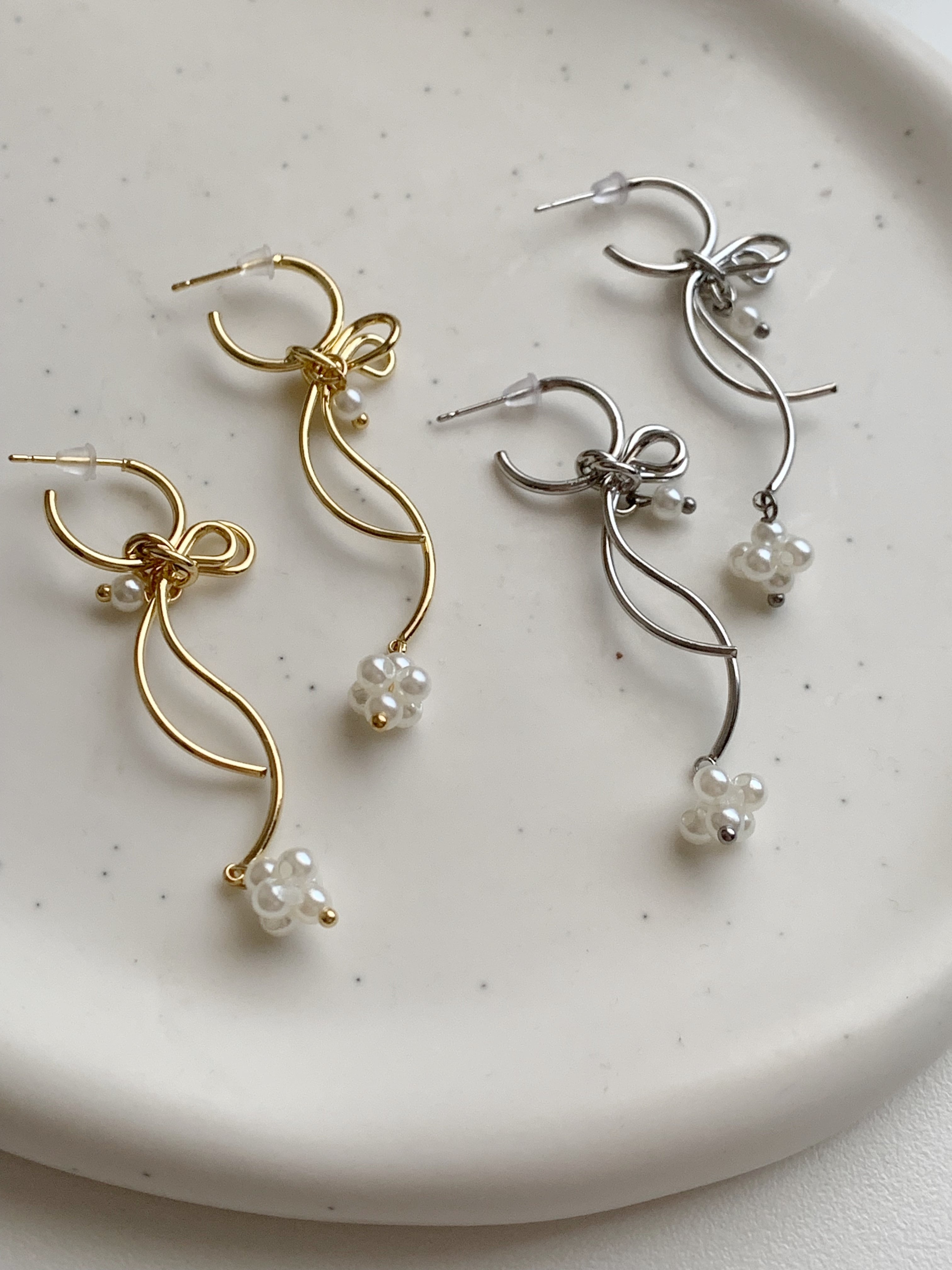 揺れるパールが可愛らしい雰囲気も出す